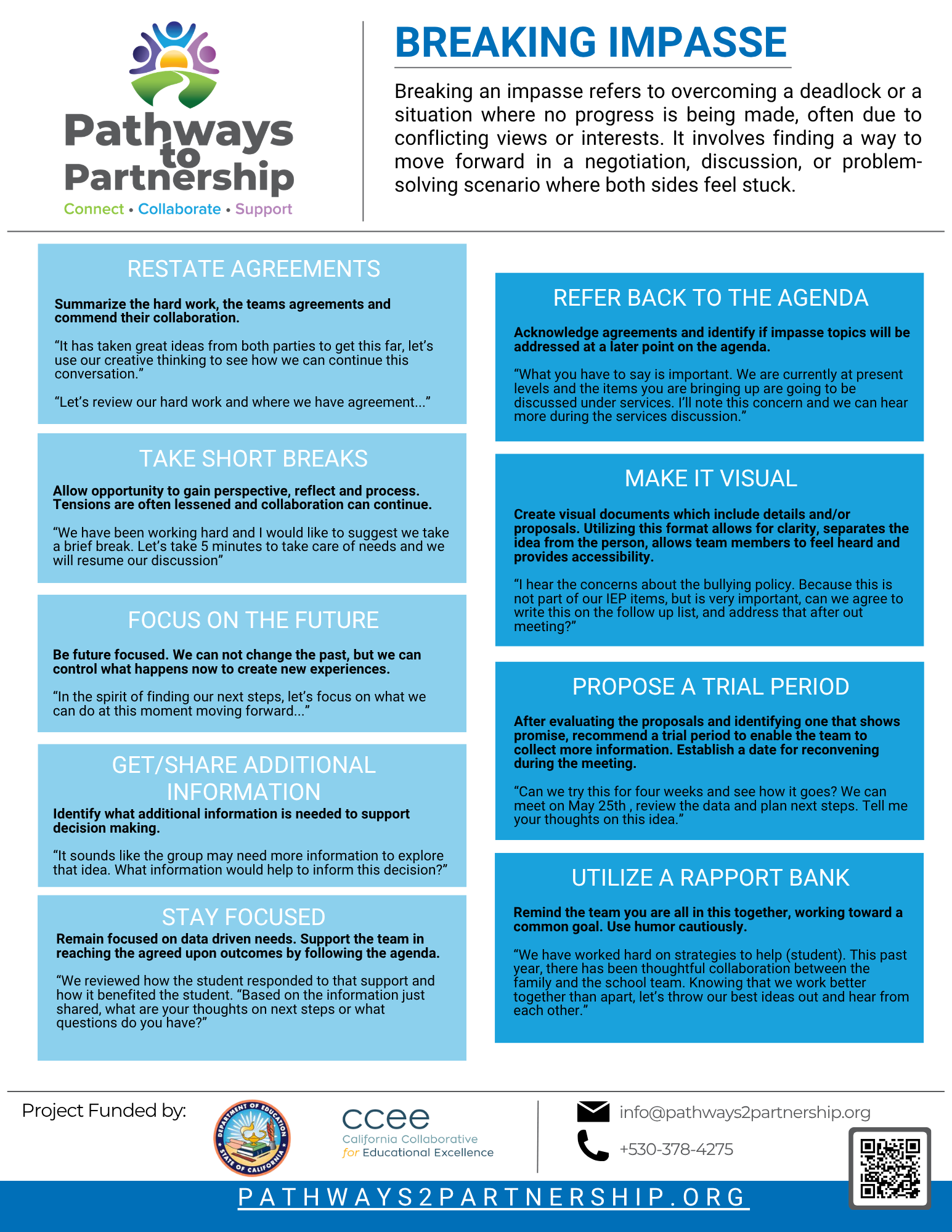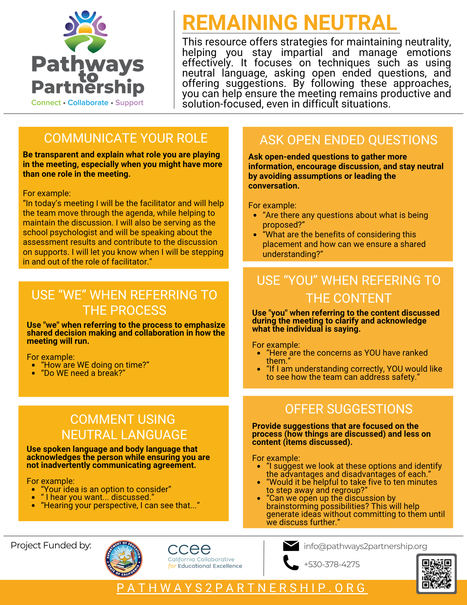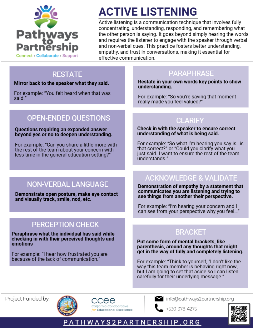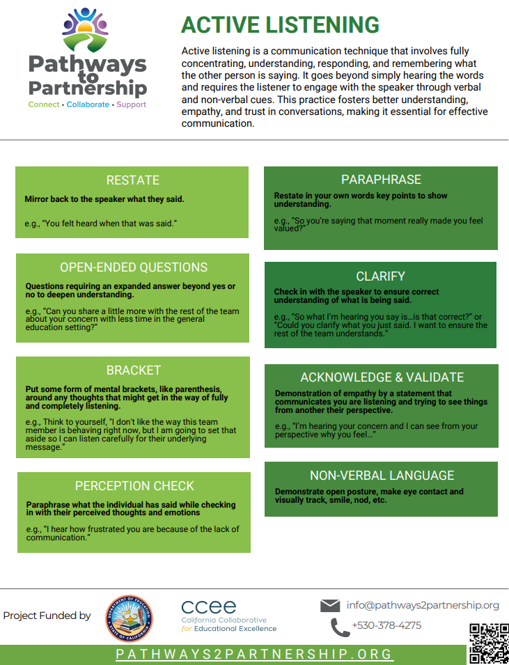 Pathways to Partnership provides professional learning and continuous improvement for educators and families throughout California with the goal of building capacity, expertise, and resources in the prevention and resolution of conflict with a student-centered focus.